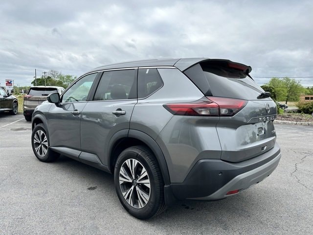 Certified. Gun Metallic 2023 Nissan Rogue SV AWD CVT with Xtronic 1.5L I3 Turbocharged DOHC 12V LEV3-ULEV50 201hp **NON SMOKER**, **NEW BRAKES**, **RECENT OIL CHANGE**, **LOW MILEAGE**, AWD, Heated Driver & Front Passenger Seats, Heated Leather Wrapped Steering Wheel, Leatherette Door Trim Inserts w/Stitch, Panoramic Moonroof, Power Liftgate, PRIMATEX Leatherette Seat Trim (DISC), Rear Door Sunshades, Rear Personal Lights, Silver Painted Roof Rails, SV Premium Package (DISC).