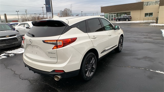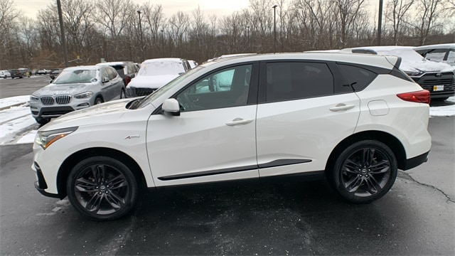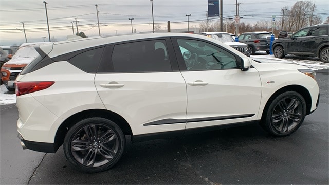 White Diamond Pearl 2019 Acura RDX A-Spec Package SH-AWD AWD 10-Speed Automatic 2.0L 16V DOHC AWD, 16 Speakers, 4-Wheel Disc Brakes, 4.17 Axle Ratio, ABS brakes, Air Conditioning, Alloy wheels, AM/FM radio: SiriusXM, Apple CarPlay, Auto High-beam Headlights, Auto-dimming Rear-View mirror, Automatic temperature control, Brake assist, Bumpers: body-color, Compass, Delay-off headlights, Driver door bin, Driver vanity mirror, Dual front impact airbags, Dual front side impact airbags, Electronic Stability Control, Emergency communication system: AcuraLink, Exterior Parking Camera Rear, Four wheel independent suspension, Front anti-roll bar, Front Bucket Seats, Front Center Armrest, Front dual zone A/C, Front fog lights, Front reading lights, Fully automatic headlights, Garage door transmitter: HomeLink, Heated & Ventilated Front Sport A-Spec Seats, Heated door mirrors, Heated front seats, Illuminated entry, Knee airbag, Lane departure: Lane Keeping Assist System (LKAS) active, Low tire pressure warning, Memory seat, Navigation system: Acura Navigation System with Voice Recognition, Occupant sensing airbag, Outside temperature display, Overhead airbag, Overhead console, Panic alarm, Passenger door bin, Passenger vanity mirror, Power door mirrors, Power driver seat, Power Liftgate, Power moonroof, Power passenger seat, Power steering, Power windows, Premium audio system: ELS Studio 3D, Premium Ultrasuede-Trimmed Interior, Radio data system, Radio: ELS Studio 3D Premium Audio System, Rear anti-roll bar, Rear reading lights, Rear seat center armrest, Rear window defroster, Rear window wiper, Remote keyless entry, Security system, Speed control, Speed-sensing steering, Speed-Sensitive Wipers, Split folding rear seat, Spoiler, Steering wheel mounted audio controls, Tachometer, Telescoping steering wheel, Tilt steering wheel, Traction control, Trip computer, Turn signal indicator mirrors, Variably intermittent wipers, Ventilated front seats, Wheels: 20" x 8" Shark Gray Split 5-Spoke.