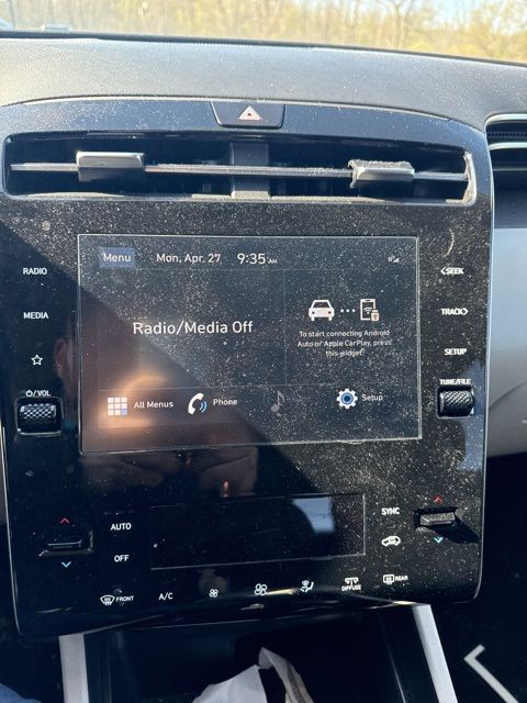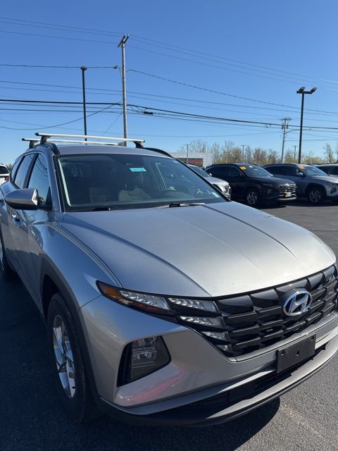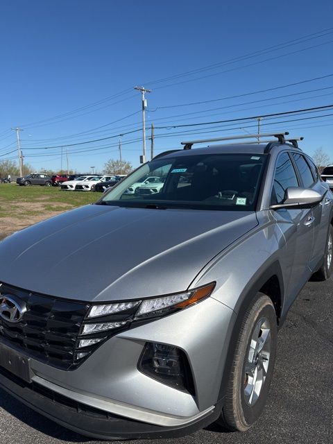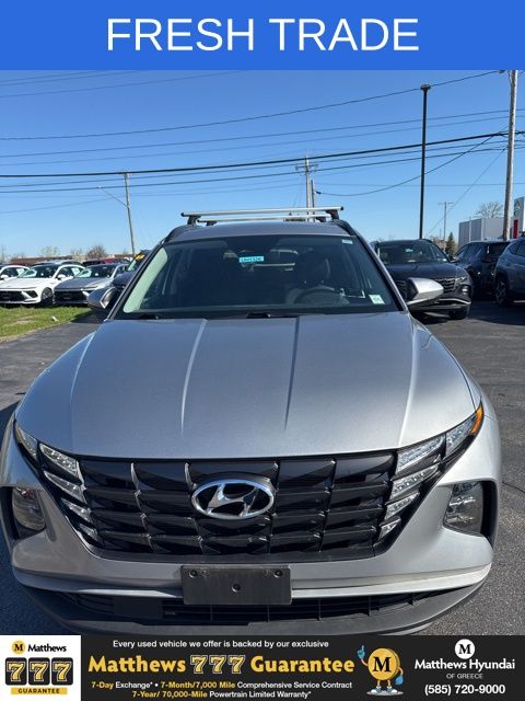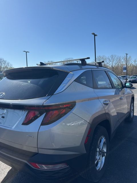 Shimmering Silver 2024 Hyundai Tucson SEL AWD 8-Speed Automatic with SHIFTRONIC 2.5L I4 DGI DOHC 16V LEV3-SULEV30 187hp AWD, 3.648 Axle Ratio, 4-Wheel Disc Brakes, 6 Speakers, ABS brakes, Air Conditioning, Alloy wheels, AM/FM radio: SiriusXM, Apple CarPlay & Android Auto, Auto High-beam Headlights, Automatic temperature control, Brake assist, Bumpers: body-color, Cargo Tray, Carpeted Floor Mats, Delay-off headlights, Driver door bin, Driver vanity mirror, Dual front impact airbags, Dual front side impact airbags, Electronic Stability Control, Exterior Parking Camera Rear, First Aid Kit, Four wheel independent suspension, Front anti-roll bar, Front Bucket Seats, Front Center Armrest, Front dual zone A/C, Front reading lights, Fully automatic headlights, Heated door mirrors, Heated Front Bucket Seats, Heated front seats, Illuminated entry, Low tire pressure warning, Occupant sensing airbag, Option Group 01, Outside temperature display, Overhead airbag, Overhead console, Panic alarm, Passenger door bin, Passenger vanity mirror, Power door mirrors, Power driver seat, Power Liftgate, Power steering, Power windows, Radio data system, Radio: AM/FM/HD Audio System, Rear anti-roll bar, Rear seat center armrest, Rear side impact airbag, Rear window defroster, Rear window wiper, Remote keyless entry, Roof Rack Cross Rails, Roof rack: rails only, Security system, Speed control, Split folding rear seat, Spoiler, Stain & Odor Resistant Cloth Seat Trim, Steering wheel mounted audio controls, Tachometer, Telescoping steering wheel, Tilt steering wheel, Traction control, Trip computer, Variably intermittent wipers, Wheel Locks.