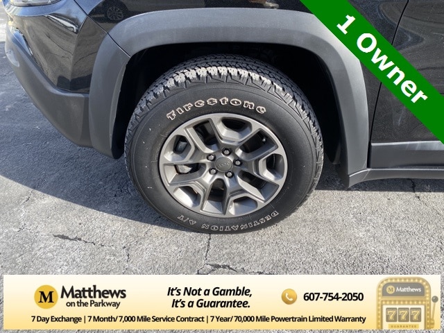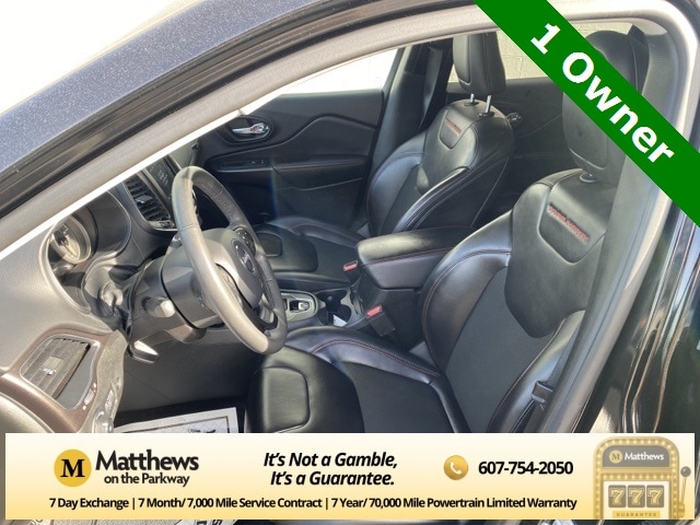 Our 2022 Jeep Cherokee Trailhawk is sharp in Diamond Black Crystal Pearlcoat! This iconic SUV has a 3.2L V6 engine with the power and performance needed for any adventure on the road.