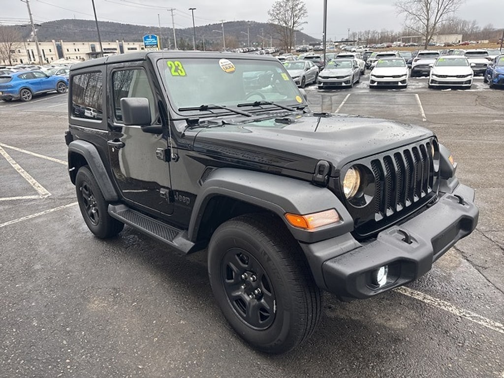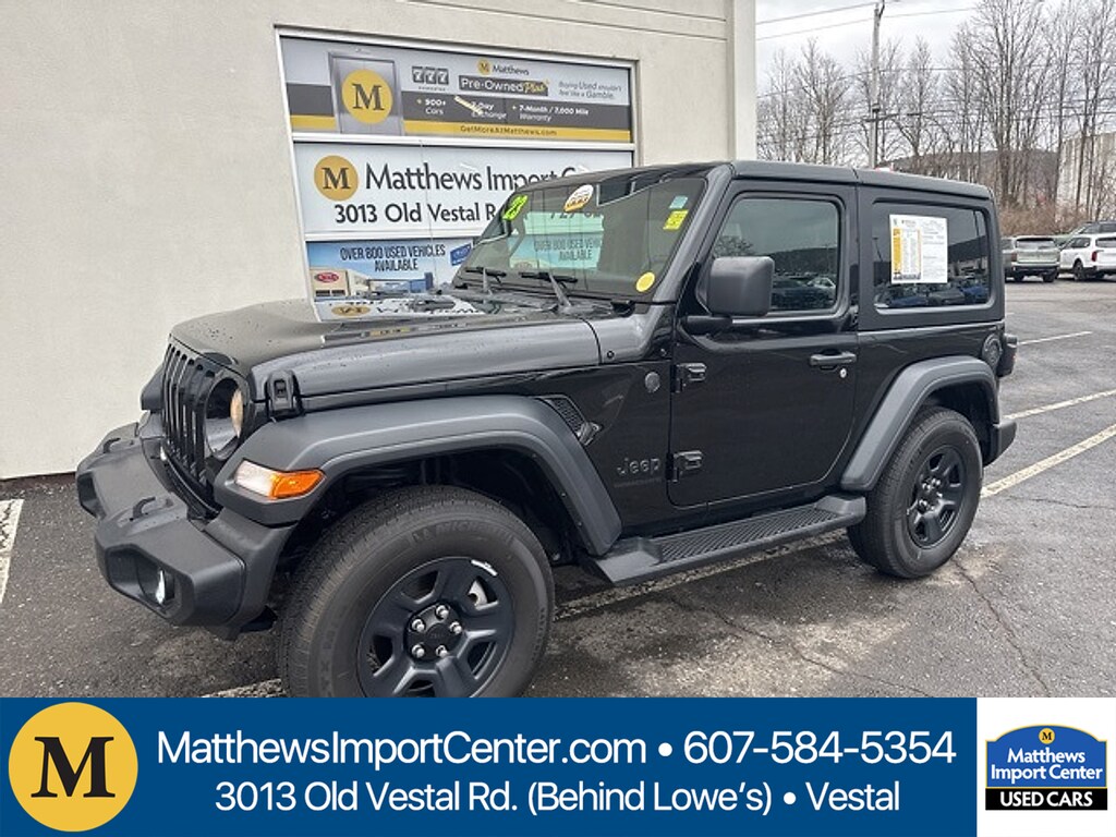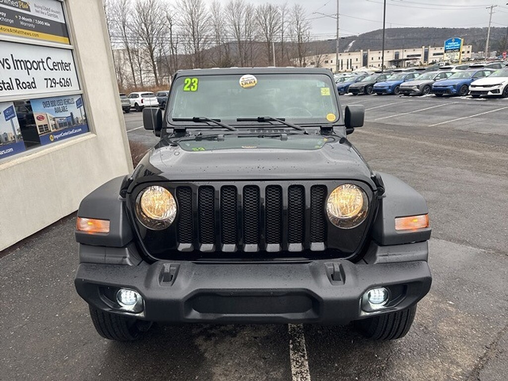Black Clearcoat 2023 Jeep Wrangler Sport 4WD 8-Speed Automatic 3.6L V6 24V VVTRecent Arrival!Matthews Import Center promises each customer a thorough and confident 120-point inspection on our used inventory guaranteeing a relaxing and peace-of-mind experience. We are located behind Lowes in Vestal NY. Or call us at (607) 729 - 6261 Matthews Import Center 3013 Old Vestal Road Vestal NY 13850.